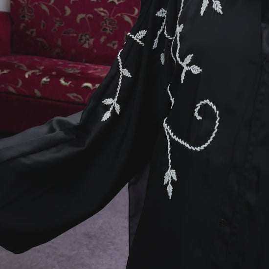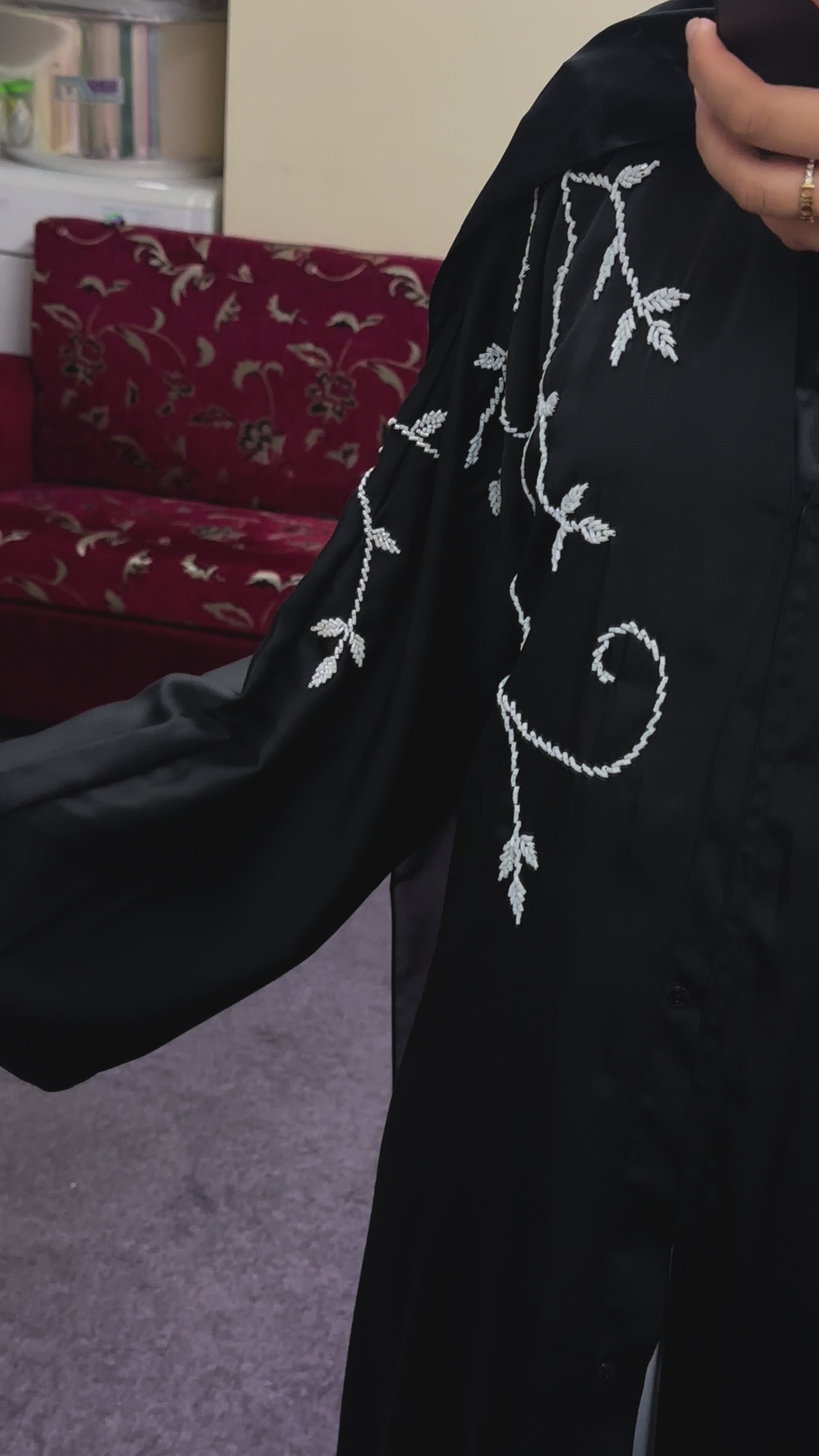 BLACK ABAYA WITH WHITE EMBELLISHMENTS